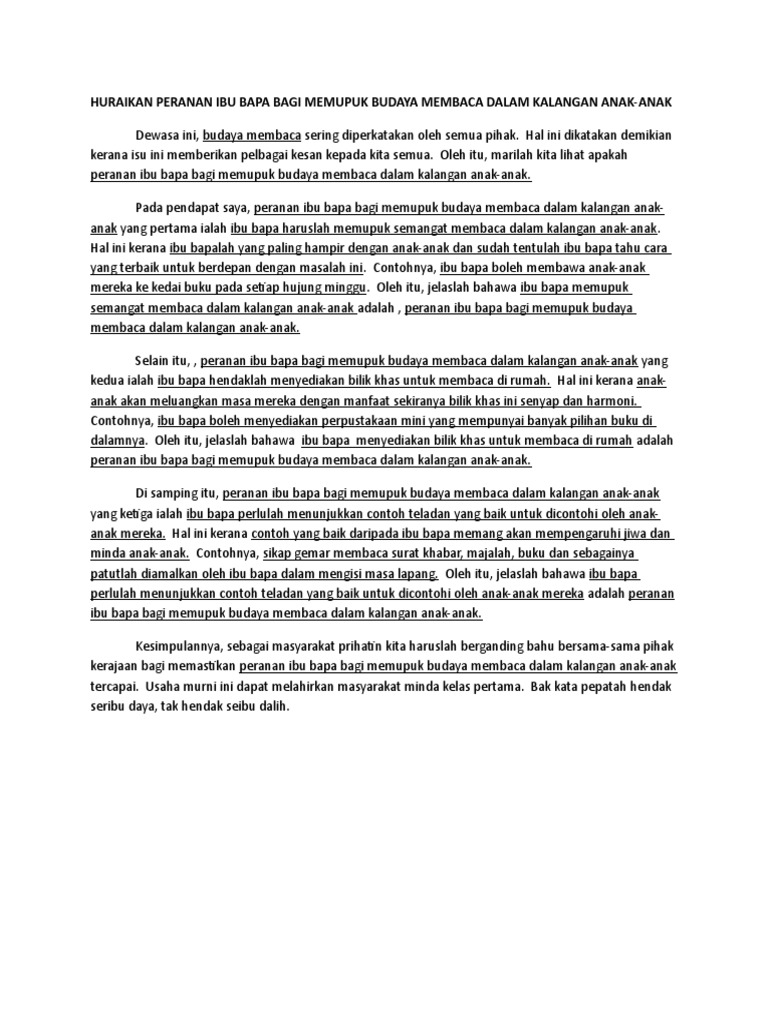 Huraikan Peranan Ibu Bapa Bagi Memupuk Budaya Membaca Dalam Kalangan Anak Pdf